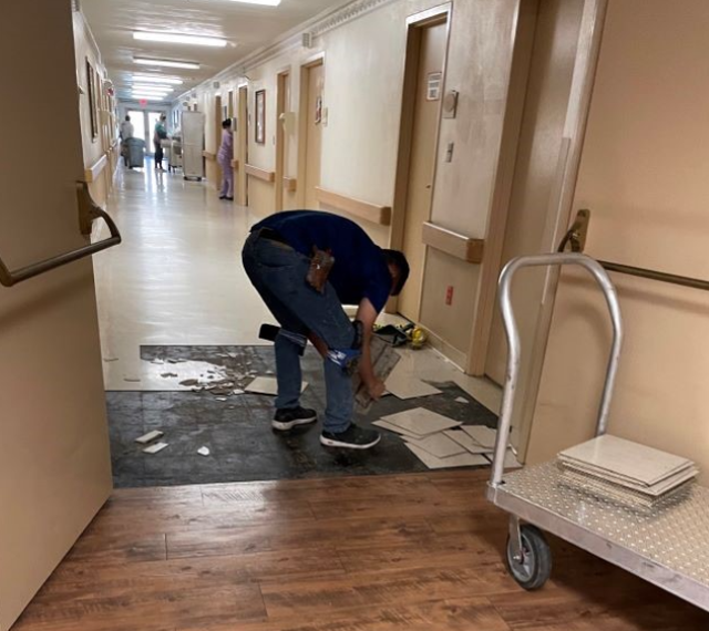 Starting in November, we began some new renovations to keep our facility looking beautiful and feeling tranquil for our residents. We are building a brand new dining room and gathering area for our residents to meet with their families and eat in a more spacious environment. On top of that, we'll be getting new flooring and a new paint job. Next, we'll be heading to the residents' rooms and bathrooms to make some updates.